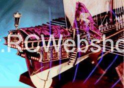 The model kit contains: detailed building instructions with a construction plan in 5 languages, printed abachi and plywood parts, round timber, abachi, mahogany and pine strips, boat decks, sails, silk for flags and awnings, glue, etc.